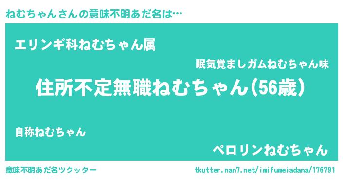 | ヘコむあだ名 | 『ねむにゅー』『ねむっ子』 |