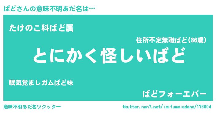 | 女子向けラノベタイトル風あだ名 | 『ばど様がみてる』『ばどの雑貨屋さん』 |
