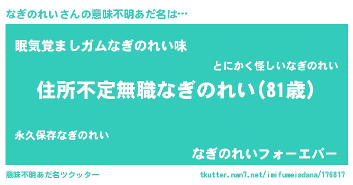 | 男性向けラノベタイトル風あだ名 | 『この素晴らしい世界になぎのれいを!』 |