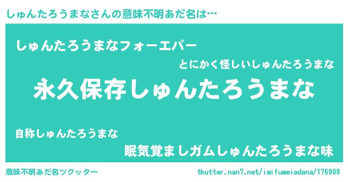 | 男性向けラノベタイトル風あだ名 | 『しゅんたろうまなという概念が存在しない退屈な世界 』 |