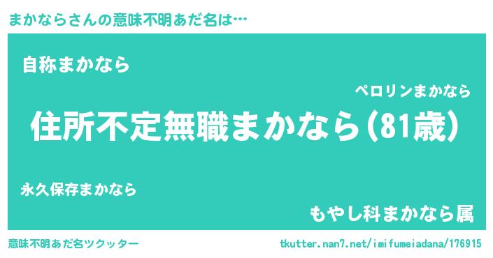 | 料理風あだ名 | 『まかならのカルパッチョ風』 |