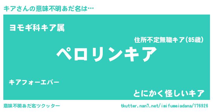 | ヘコむあだ名 | 『キアっふぃ~』『キアぷりん』 |
