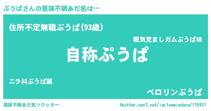 | ヒーロー風カッコイイあだ名 | 『究極戦士プウパ』『仮面プウダー』 |