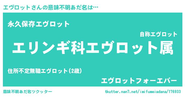 | ヒーロー風カッコイイあだ名 | 『ネオエヴロット』『究極戦士エヴロット』 |
