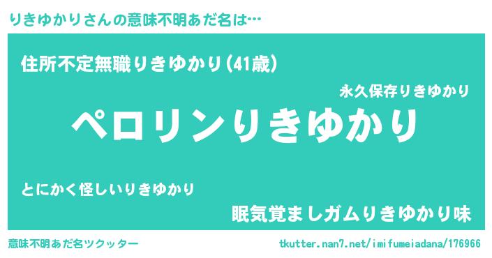 | 胡散臭い通販商品みたいなあだ名 | 『必ず成功する霊験あらたかなお札…その名も「りきゆかり」』 |