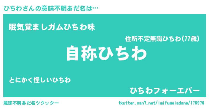 | ヒーロー風カッコイイあだ名 | 『超時空戦士ヒチワ』『慈愛の使者ひちわ』 |