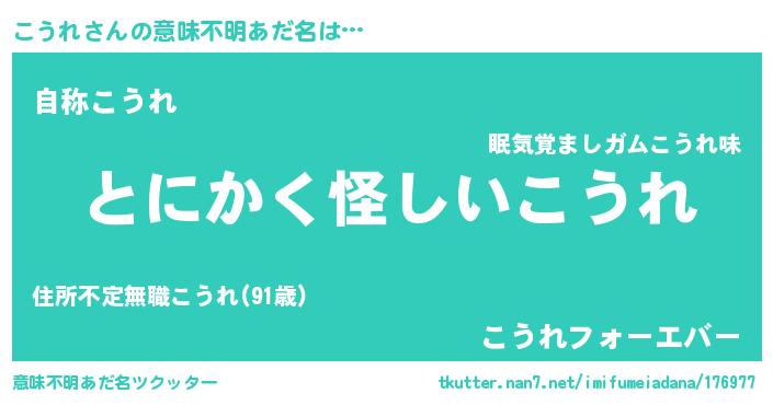| 女子向けラノベタイトル風あだ名 | 『こうれ様がみてる』『闇のこうれ』 |