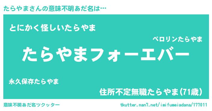 | 女子向けラノベタイトル風あだ名 | 『たらやまの雑貨屋さん』 |