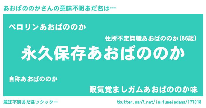| 欧米人風あだ名 | 『ダルビッシュあおばののか』 |