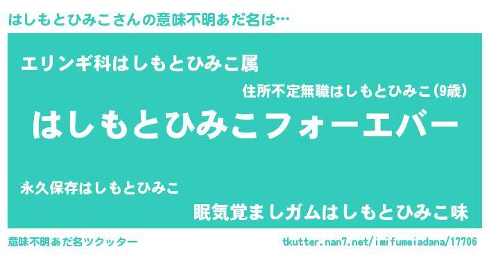 | ファンタジー風あだ名 | 『エターナルハシモトヒミコー』 |