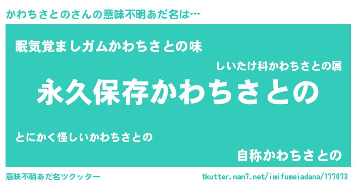 | ヒーロー風カッコイイあだ名 | 『ネオカワチサトノ』『黄金騎士カワ』 |