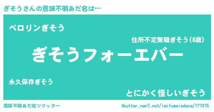 | 2回繰り返すあだ名 | 『ぎぎそそ』『ぎそぎそ』『うずうず』 |