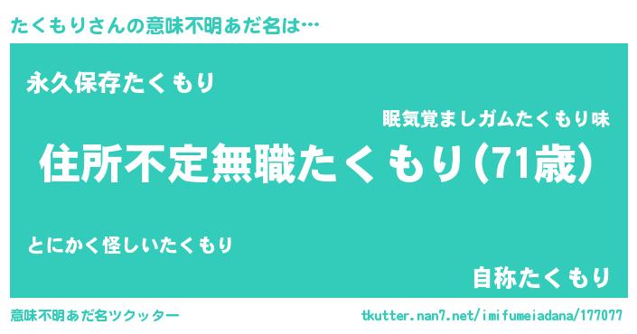 | 胡散臭い通販商品みたいなあだ名 | 『あなたにだけ特別に提供する世界で10本だけ現存している希少なブランデー…その名も「たくもり」』 |