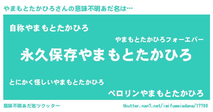 | 男性向けラノベタイトル風あだ名 | 『やまもとたかひろという概念が存在しない退屈な世界 』 |