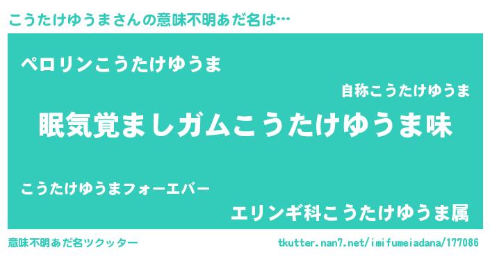 | 男性向けラノベタイトル風あだ名 | 『ノーゲーム・ノーコウタケユウマ』 |