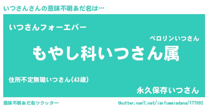 | 男性向けラノベタイトル風あだ名 | 『転生したらいつさんだった件』 |