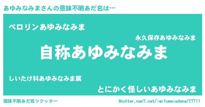 | 女子向けラノベタイトル風あだ名 | 『あゆみなみまなんてお断りですっ。』 |