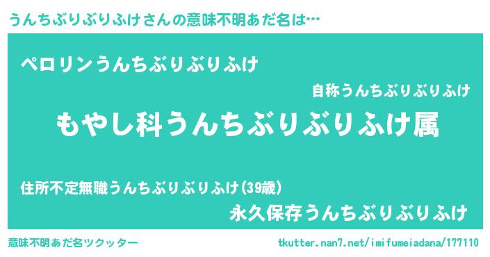 | 男性向けラノベタイトル風あだ名 | 『転生したらうんちぶりぶりふけだった件』 |