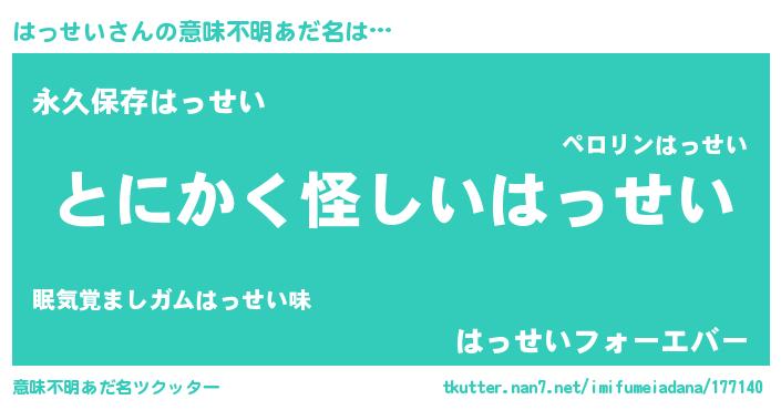 | 男性向けラノベタイトル風あだ名 | 『はっせいの嫁は女の子じゃないと思った?』 |