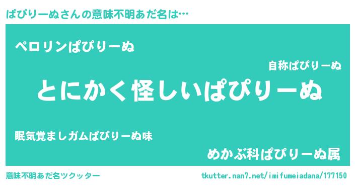 | 男性向けラノベタイトル風あだ名 | 『ぱぴりーぬの嫁は女の子じゃないと思った?』 |