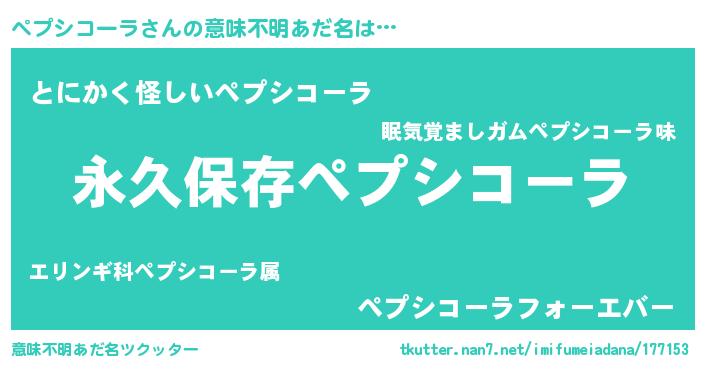 | 胡散臭い通販商品みたいなあだ名 | 『来世でも幸せになれる健康食品…その名も「ペプシコーラ」』 |