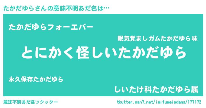 | 男性向けラノベタイトル風あだ名 | 『たかだゆらに滅ぼされるだけの簡単なお仕事です』 |