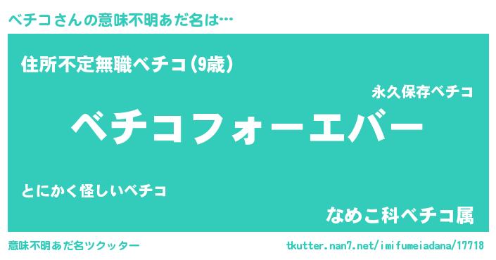 | 女子向けラノベタイトル風あだ名 | 『ベチコの雑貨屋さん』 |