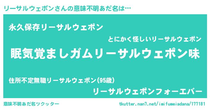 | 男性向けラノベタイトル風あだ名 | 『ノーゲーム・ノーリーサルウェポン』 |
