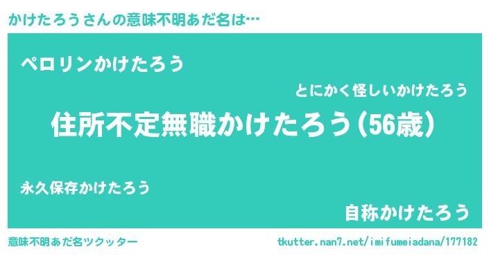 | 男性向けラノベタイトル風あだ名 | 『この素晴らしい世界にかけたろうを!』 |