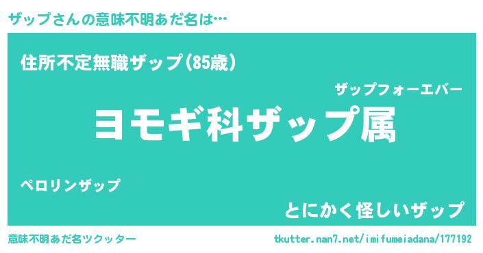| ヘコむあだ名 | 『ザッを』『豆乳』『ザッっふぃ~』 |