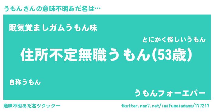 | 男性向けラノベタイトル風あだ名 | 『この素晴らしい世界にうもんを!』 |