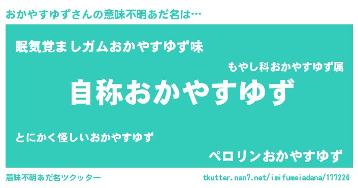 | 肩書あだ名 | 『おかやすゆず総統』『おかやすゆず中佐』 |