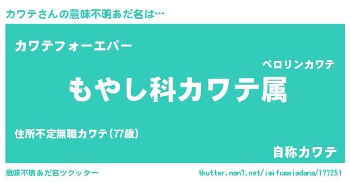 | 欧米人風あだ名 | 『カワテ・ステッグマイヤー』 |