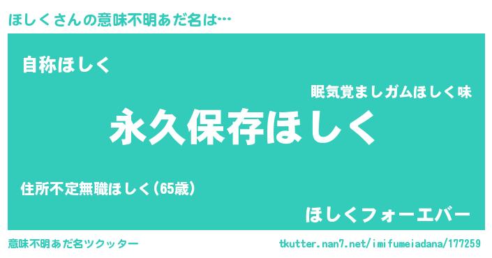 | 胡散臭い通販商品みたいなあだ名 | 『来世でも幸せになれる水素水…その名も「ほしく」』 |