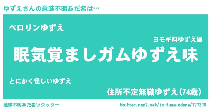 | ポケモン風あだ名 | 『ユックウザ』『ユズチュウ』 |