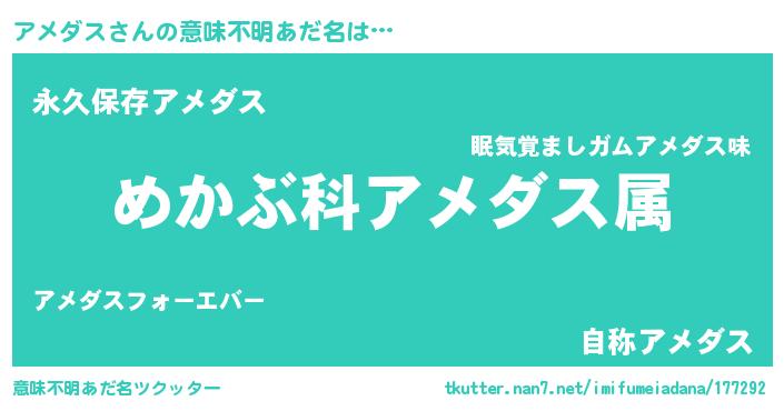 | ヘコむあだ名 | 『アメダス(笑)』『つくし』『アメお』 |
