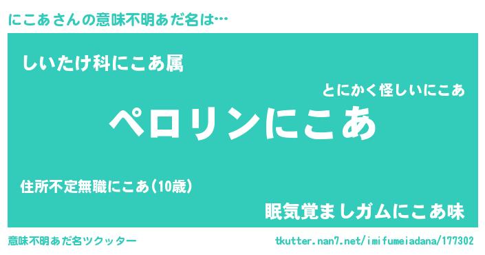 | 男性向けラノベタイトル風あだ名 | 『にこあの憂鬱』『ニコアスレイヤー』 |