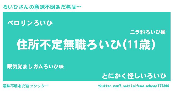 | 男性向けラノベタイトル風あだ名 | 『この素晴らしい世界にろいひを!』 |