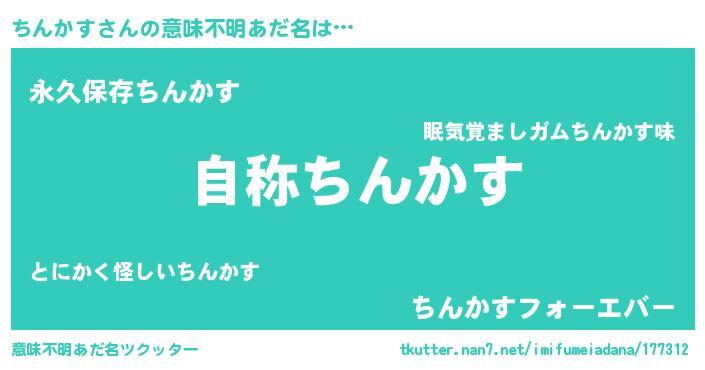| ヘコむあだ名 | 『ちんかす(笑)』『つくし』『ちんを』 |