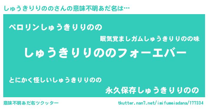 | 男性向けラノベタイトル風あだ名 | 『やはりしゅうきりりののの青春ラブコメはまちがっている 』 |