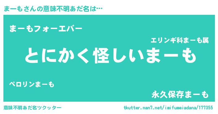 | 女子向けラノベタイトル風あだ名 | 『まーも様がみてる』『まーも伯爵の花嫁』 |