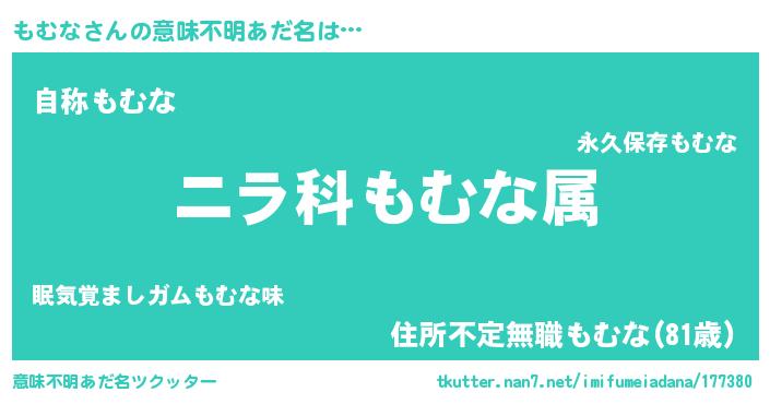 | 男性向けラノベタイトル風あだ名 | 『もむな~年齢イコール彼女いない歴の魔法使い~』 |