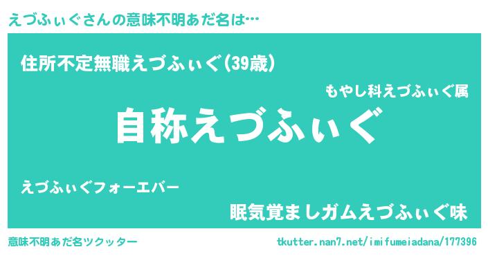 | 男性向けラノベタイトル風あだ名 | 『Re:えづふぃぐから始める異世界生活』 |