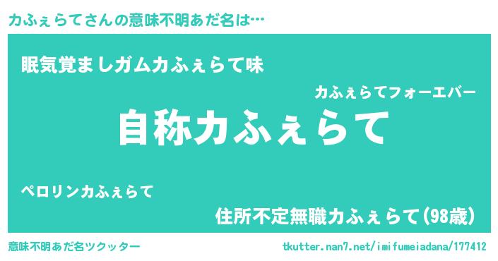 | 肩書あだ名 | 『カふぇらて閣下』『カふぇらて船長』 |