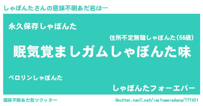 | ヒーロー風カッコイイあだ名 | 『正義の使者しゃぼんた』『仮面シャダー』 |