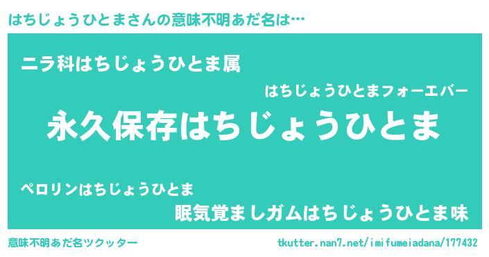 | 伝説のあだ名 | 『古より伝わる吟遊詩人はちじょうひとま』 |