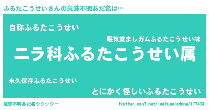 | 料理風あだ名 | 『ふるたこうせいとほうれんそうの和風グラタン』 |