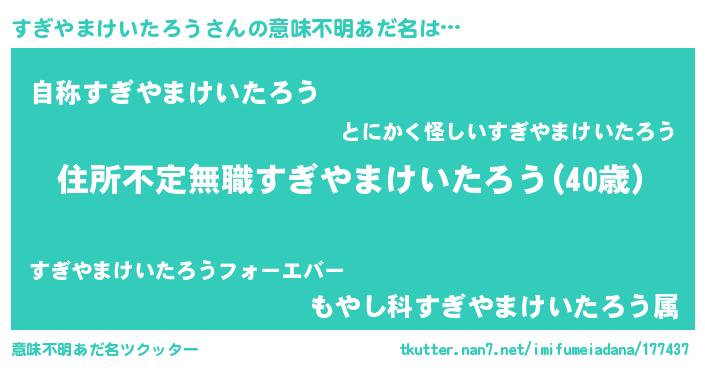 | 欧米人風あだ名 | 『ダレノガレすぎやまけいたろう』 |