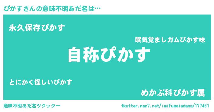 | ヘコむあだ名 | 『ぴかす(震え声)』『ぴかお』『豆乳』 |