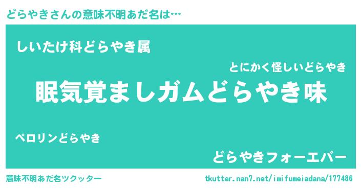 ヘコむあだ名 | 『豆乳』『どらを』『どらもー』 |